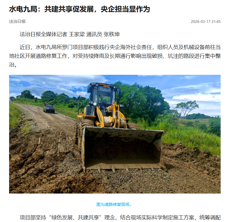 《法治日報》丨水電九局:共建共享促發(fā)展,央企擔(dān)當(dāng)顯作為